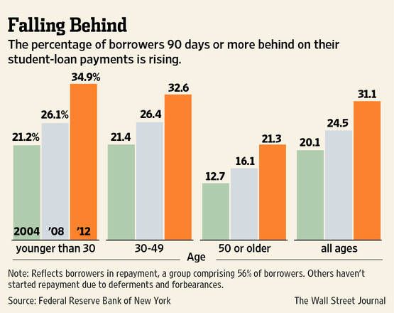 In 2007 a small number of French hedge funds imploded over sudden losses stemming from highly leveraged bets made on the unstoppable subprime mortgage market. At the time, a few saw the writing on the wall; but many simply wrote it off as just another over-levered hedge fund and the subprime mortgage market was ‘fine’. Fast forward six years and as we have discussed numerous times (most recently here and here) there is a bubble, potentially far bigger than subprime, in student loan debt. As one of the last remaining outlets for state-sanction credit creation, this is a big deal; but, of course, the popping of the bubble (or even a slight leak) is eschewed since there is so much ‘reach for yield’ and the Fed’s got your back. That is until this week. As WSJ reportsSallie Mae (SLM), the nation’s largest non-government student lender just cancelled a $225 million debt offering as investors  decided they simply were not getting paid enough for risk – amid rising student loan defaultsSimply put, there’s a limit to what investors will tolerate. SLM was offering a stunningly low 3.5% interest on the deal and investors snubbed it, “There are certain limits that can’t, or shouldn’t, be crossed if you’re an investor,” adding that, “we’re beginning to see what the tolerances are.” This is a significant shift since SLM and other issuers of debt backed by student loans sold $7.8 billion worth of securities this year through last week, up from $5.7 billion in the same period of 2012. With the portion of student borrowers who are late on their debt payments by 90 days or more climbing to 31% in 2012, from 24% in 2008; we wonder if this is the tipping point for the student debt in 2013 that was generally ignored in subprime in 2007, until it was too late.