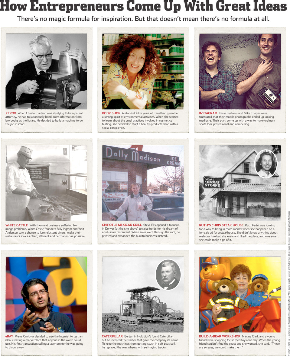 At the heart of any successful business is a great idea. Some seem so simple we wonder why nobody thought of them before. Others are so revolutionary we wonder how anybody could’ve thought of them at all. But those great ideas don’t come on command. And that leaves lots of would-be entrepreneurs asking the same question: How did everybody else get inspiration to strike—and how can we work the same magic? To find out, we turned to the experts—investors, advisers and professors who have seen and heard countless success stories, as well as entrepreneurs who have written success stories of their own. They saw inspiration coming from all sorts of sources—everyday puzzles, driving passions and the subconscious mind. Here’s what they had to say. Read more of this post