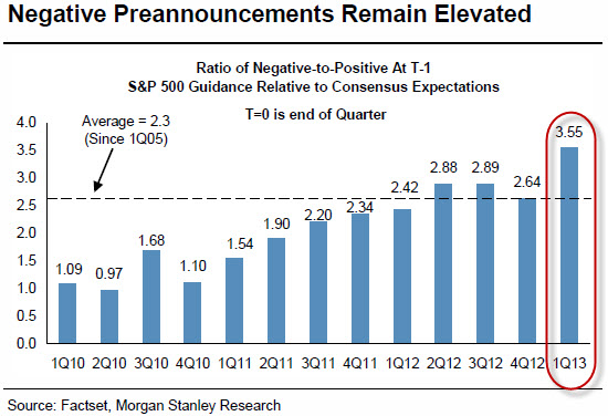 Chart of the Day: Ratio of Negative to Positive Earnings Guidance stands at a record high; At 3.5 negative updates for every positive one, that is by far the highest ratio since FactSet began tracking such data in 2006.