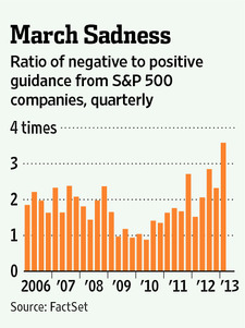 Recent months have offered yet more proof that markets love to climb a wall of worry. Hand-wringing, whether from retail investors or professional pundits, often precedes heady gains. But some people’s anxiety counts for more than others. While last week the S&P 500 finally erased all its bear-market losses and strategists are falling over one another to raise their year-end targets, the only people in the market with legal inside information are surprisingly cautious. As the first quarter drew to a close, 86 companies in the S&P 500 issued negative guidance for what they expect to report in earnings for that period. Just 24 issued positive guidance. At 3.58 negative updates for every positive one, that is by far the highest ratio since FactSet began tracking such data in 2006.