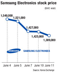 Hana Daetoo Securities researcher Jeon Sung-hoon said the price would return to the previous level in early July when Samsung announces its second quarter earnings.