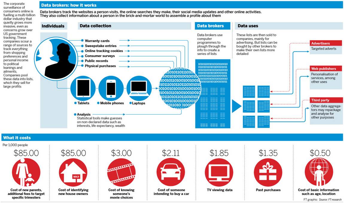 “In isolation, that atom of information [about one person] actually isn’t worth very much,” said Tim Suther, the chief marketing and strategy officer for Acxiom, one of the biggest data brokers with a market capitalisation of $1.6bn. “Where is the value in this? The value is in aggregation.”