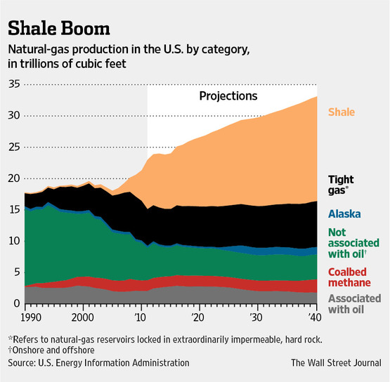 Sometimes it seems as if the environmental movement has been left behind by the sheer speed of America’s shale energy revolution. That may be because a resource—natural gas—that environmental groups once saw as part of the solution has become part of the problem, at least as they see it. Shale gas and oil are widely viewed as one of the biggest forces to hit the U.S. economy in modern history. Total U.S. gas production has rocketed 33% since 2008 and oil 46%, driving down energy costs. The expanding shale industry supported 1.7 million jobs in 2012 and produced $62 billion in state and federal tax revenue, according to IHS/CERA, the energy consultancy.