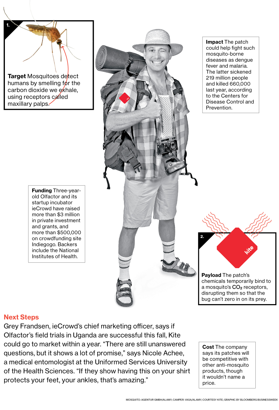 Form and function: Kite Mosquito Patch, a nontoxic 1.5-inch-square sticker, renders a person invisible to mosquitoes for up to 48 hours.
