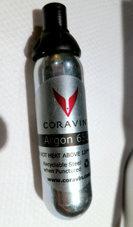 Inventor Greg Lambrecht, founder of medical device company Intrinsic Therapeutics, Inc., after showing off his Coravin wine preservation system at Del Posto. The restaurant’s wine director, Jeff Porter, has been using the device to serve rare, expensive Italian wines by the glass since last November. A cartridge of Argon gas, used to keep wine fresh within the Coravin wine preservation device. A hollow needle is pushed into the cork, then a button releases argon gas into the wine. Coravin of white Burgundy 2010 Alex Gambal Meursault Clos du Cromin. The Coravin is an ingenious wine preservation system that allows you to access wine without pulling the cork and keeps the wine inside the bottle fresh for years. Photographer: Elin McCoy/Bloomberg