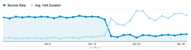 And finally, this screenshot tells the full story. Bounce rate vs. average visit duration actually inverted like an X, and has stayed stable since:
