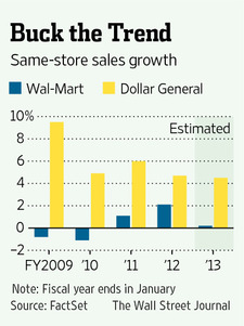 In the next few years, though, that difference is seen narrowing. This raises the question of Dollar General’s premium valuation. The stock trades at 15.1 times the next 12 months’ estimated earnings, almost two points higher than Wal-Mart. Since Dollar General went public again in late 2009, after being bought two years earlier, its stock has beaten Wal-Mart’s by nearly 100 percentage points.
