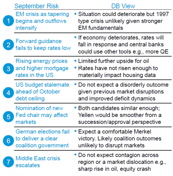 Ahead of September, historically the worst month for stocks, Deutsche Bank notes that volatility has picked up and corporate bond issuance has slowed. There are several possible risks over the next few weeks that could trigger a further escalation in market volatility…