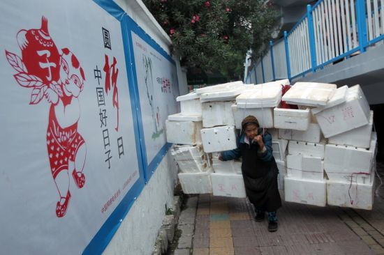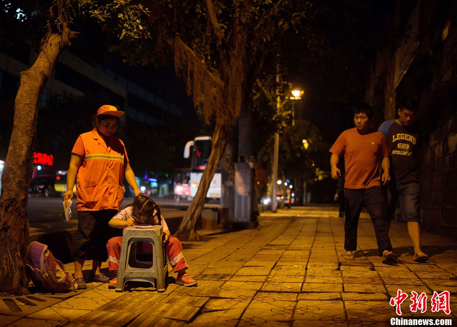 Tang Dingrui, 7, studies beside the road under streetlight every night in Yibin city, southwest China, while her mother, a sanitation worker, cleans road near her. Wu Weixiu, 38, divorced, lives with her 60-year-old mother and Tang Dingrui. Wu has to do all housework after work, and because of outdoor work, she looks older than her real age. “My mother is illiterate, so she cannot help with my daughter’s homework. Also Tang was born shortsighted, no one can take care of her, so I have to take her with me after school hour. ” Wu feels guilty to her daughter. During her break, she checks her daughter several times and sometimes she reads textbook with her. But Tang has a positive mind. “My mom has no money to treat my eyes, but she buys new glasses for me every year,” she said happily. Tang has another explanation as to why she does homework under streetlight, saying “streetlight is brighter than the light in my home, and my mom can save electricity expense if I study here.”