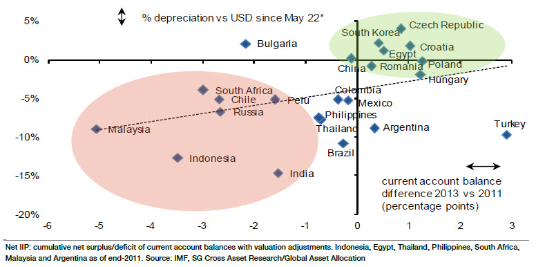 Countries with a deteriorating external balance have seen their currencies depreciated strongly since 22 May (e.g. India).