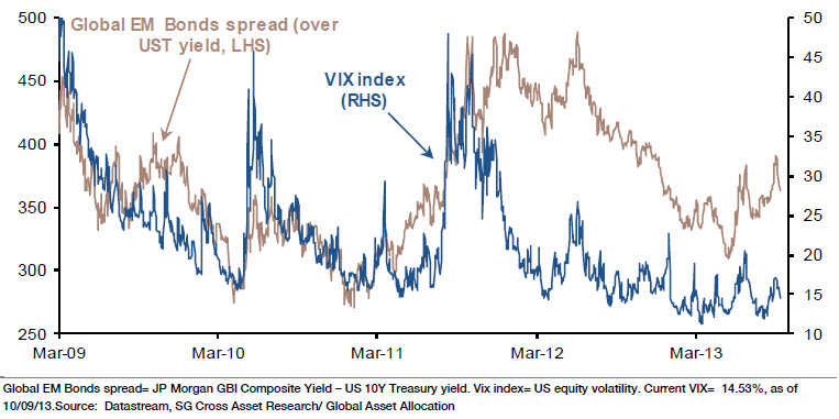 The average correlation between EM equities, EM bonds and EM FX has strongly increased since Bernanke first signalled he was considering the tapering of asset purchases.