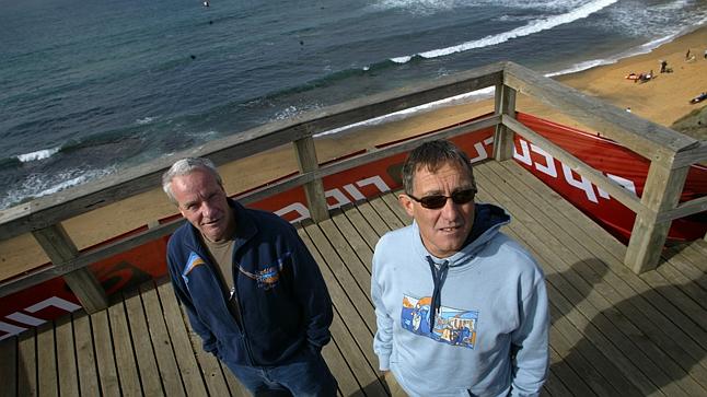 Founders of Rip Curl Brian Singer and Doug Warbrick at Bells Beach. Photo: Paul Harris