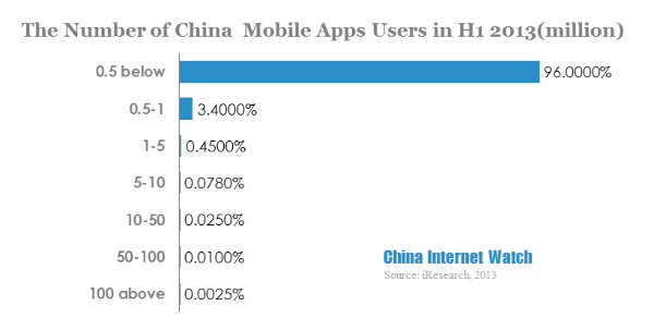 Merely 1% China Mobile Apps Reached Million Users in H1 2013: Report