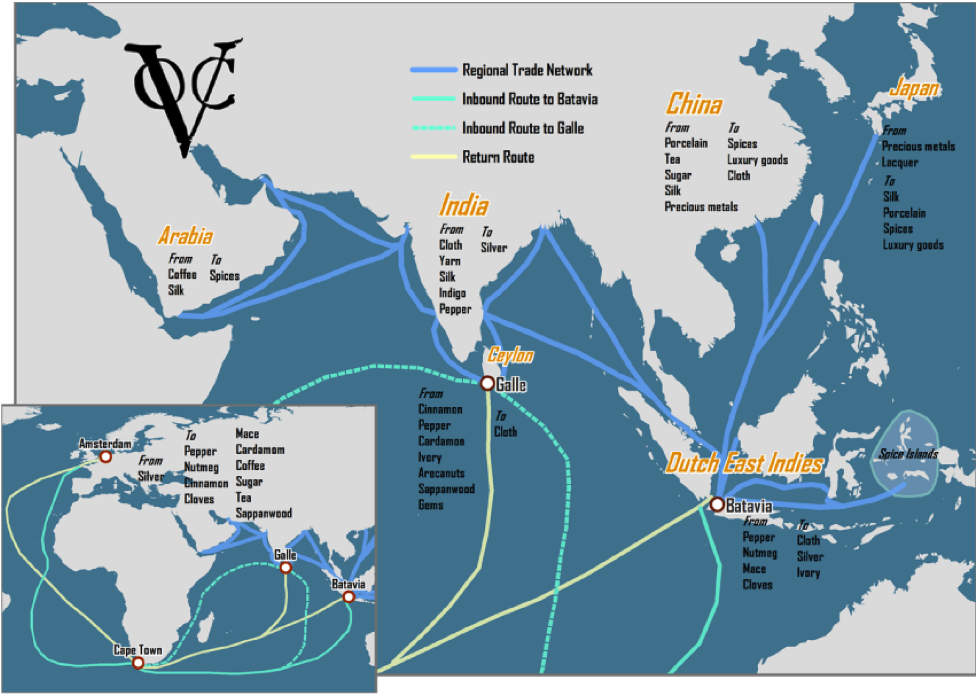 Most of the VOC’s Asian possessions were ceded to the British after the Napoleonic Wars were finished, and the English East India Company took over the VOC’s infrastructure.