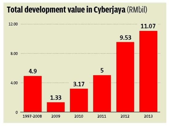 Faris said the total investments in Cyberjaya since 1997 was RM35bil. However, for 2013, the total investment is now worth RM11.07bil.