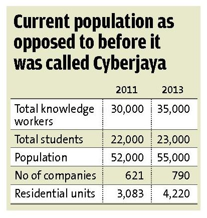 To date, Cyberjaya’s day-time population has reached 55,000 this year as opposed to 52,000 in 2011. The number of knowledge workers have increased to 35,000 this year compared to 30,000 in 2011.
