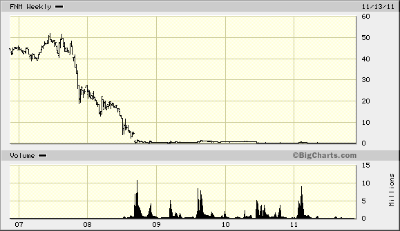 “There was clearly outright fraud, as they were reporting earnings for years when they really had no idea whether they were making money — they were just making stuff up,” he says. “People are still in denial about Fannie Mae / Federal National Mortgage Association (OTCBB:FNMA)’s value. They took every phony mortgage loan ever made by banks, losing billions, and now the government wants them to take on even more bad loans to bail people out? They should just let it go bankrupt!”