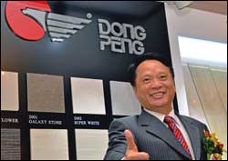 Under He’s leadership, Dongpeng has become China’s largest ceramic tile producer, just like a mighty hawk soaring into the sky – as suggested by the company name. Dong in Putonghua means “east” and “peng” is hawk. Under a wholesale model, the firm has established solid business relationships with distributors and dealers who sold “Dongpeng-branded tiles” through 1,466 retail stores nationwide as of June 30.