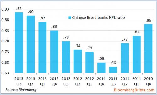 The following chart from Bloomberg showing official Chinese NPL data has its pros and cons.