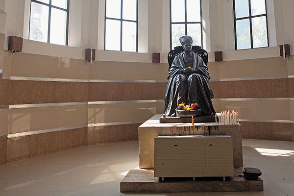 The statue of Jamshetji Jejeebhoy in the hallway of JJ Hospital