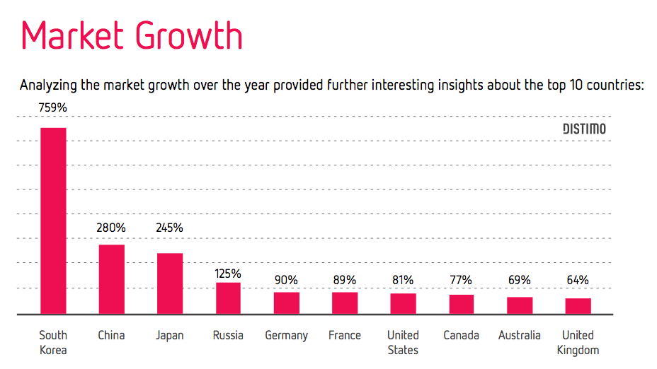 The effect of that shift is most pronounced in Asia, where Apple now has only a minority share of app revenue in South Korea and Japan: