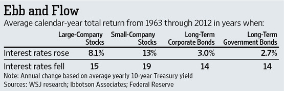 In an average rising-rate year, large-company stocks delivered returns, including dividends, of 8.1%, before inflation, according to a Wall Street Journal analysis of U.S. data from research firm Ibbotson Associates. That is 6.5 percentage points less than such stocks earned in falling-rate years.