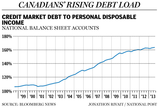 Canada’s economy, once the envy of developed countries following the global recession, is struggling to gain momentum as households deal with record debts. Low interest rates pushed the nation’s ratio of debt to disposable income to a record 163.7% in the third quarter, according to Statistics Canada, surpassing levels in the U.S.