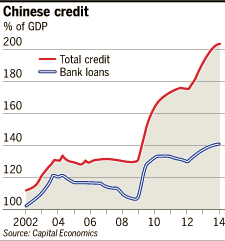 Perhaps the biggest question of all concerns what is going to happen to China. Since 2008 its growth has become increasingly dependent on soaring credit (see chart). This cannot be sustainable, any more than investing half of gross domestic product will make sense in an economy growing at three-quarters of its historic rate. Beijing may face a choice between radical reform and so a bigger than planned slowdown now; and postponed reform and a far bigger disruption to growth later on.