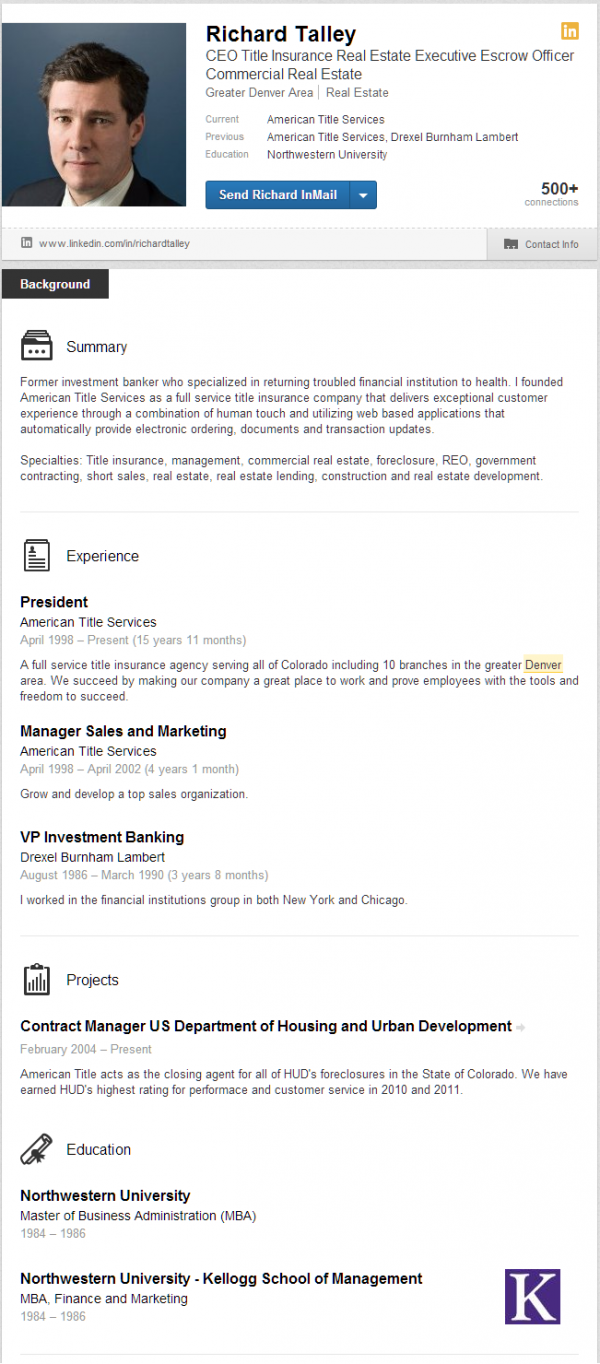 Before coming to Colorado, Talley was a former regional financial officer at Drexel Burnham Lambert in Chicago, where he met his wife, Cheryl, a vice president at the company. The two married in 1989.