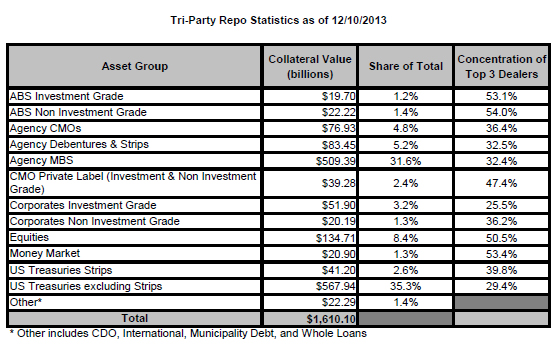 Fast forward to today when we find that the total collateral value in the Tri-Party repo system as of December amounts to $1.6 trillion.