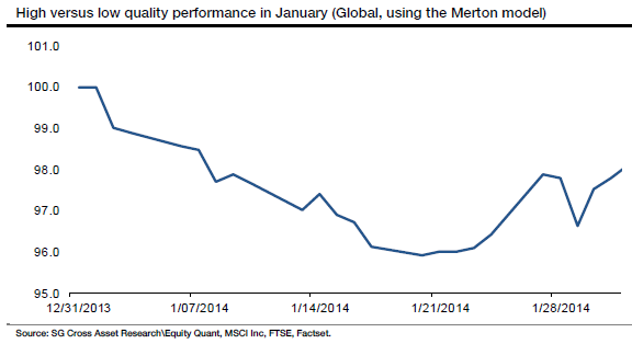 The January sell-off exposed the fact that investors were still pushing money into low quality stocks compared to quality names.