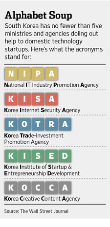 SEOUL—Government officials here hope that a thriving local startup scene could soon put fresh Korean technology names on the global stage—and they are sparing no expense to make it happen.