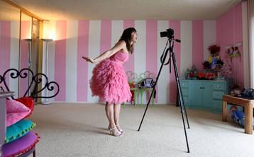 Olga Kay, a former juggler, uses her home in Encino, Calif., as a studio to make videos for her various channels on YouTube which attract about a million subscribers. J. Emilio Flores for The New York Times
