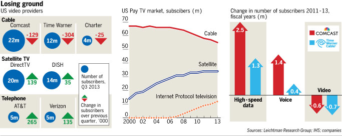 Last week, Comcast, the cable industry leader, made a move to win that power back, announcing a $45bn deal to acquire Time Warner Cable. The combination of the top two US cable operators would control about a third of the country’s video and broadband customers. It is expected to face close regulatory scrutiny.
