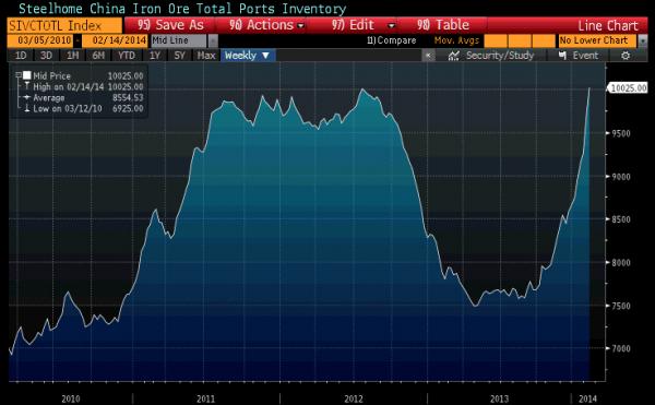 As we noted last week, Bloomberg reports China’s record imports of iron ore and copper, driven by traders who use them as loan collateral, risk repeating the vicious cycle of repayment difficulties and falling prices already seen in the steel-trading market.