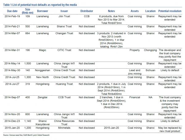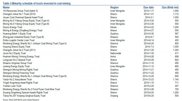 Details: Xiaoyi Dewei is a Shanxi coal miner. The trust product originally matured in Dec 2013 but repayment was extended to Dec 2014.