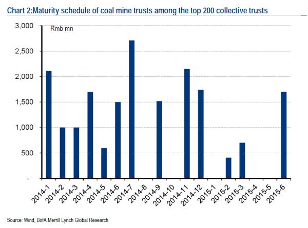 Our analysis has largely zoomed in on coal mine trusts because they represent the clear and present danger given how depressed the coal market has been. However, property related trusts may come under increasing pressure as we sense that the property market may be turning south in small cities. As a result, some of those related products may threaten to default reasonably soon. Then we have the big unknown – LGFV trusts. Whether and when they may default is largely a political decision in our opinion.