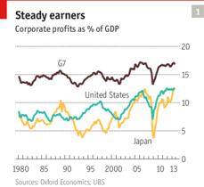 Government policy also has serious (and sometimes unintended) effects on corporate structure. In America, high corporate taxes and a growing body of regulation have led to a decline in the number of public corporations and the emergence of alternative structures such as “master limited partnerships”. Around the world, the tax deductibility of interest payments has encouraged a greater reliance on debt rather than equity and favoured private-equity firms. Even though executives moan about excessive government interference, shares on Wall Street have been hitting record highs, and profits as a share of America’s GDP are close to a post-war high.