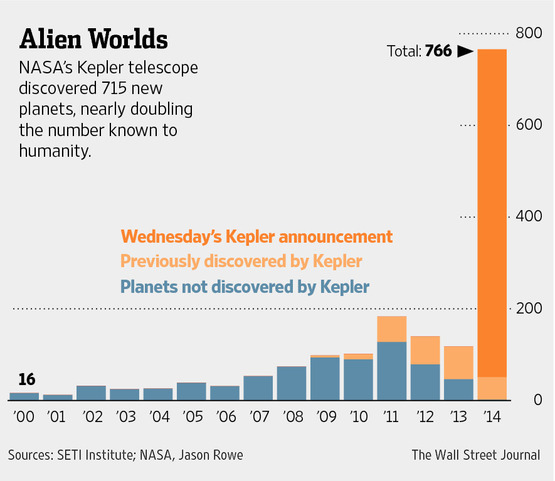 “We have almost doubled the number of planets known to humanity,” said planetary scientist Jack Lissauer at NASA’s Ames Research Center in Mountain View, Calif., who is a science co-investigator on the $600 million Kepler space telescope mission.