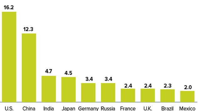 Gross Domestic Product, 2012 by Purchasing Power Parity (millions of international dollars)3