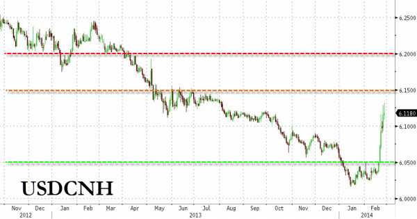 The bottom line is the question of whether the PBOC’s engineering this CNY weakness is merely a strategy to increase volatility and thus deter carry-trade malevolence (in line with reform policies to tamp down bubbles) OR is it a more aggressive entry into the currency wars as China focuses on its trade (exports) and keeping the dream alive? (Or, one more thing, the former morphs into the latter as a vicious unwind ensues OR the market tests the PBOC’s willingness to break their momentum spirit).