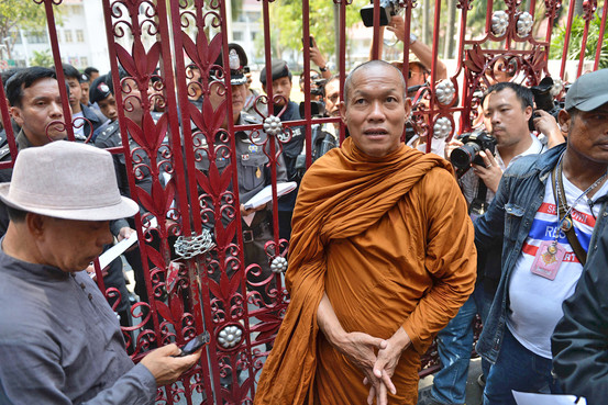 Tadashi Yanai, chief executive of Fast Retailing Co., poses before hitting a gong during listing ceremony at the Hong Kong Stock Exchange. Associated Press