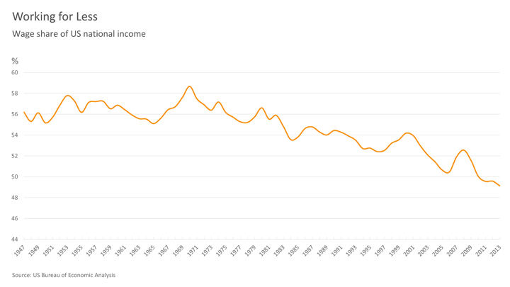 As a result, Malthus’s concerns about mass starvation have failed to materialize in any peaceful capitalist economy. And, despite a disconcerting fall in labor’s share of income in recent decades, the long-run picture still defies Marx’s prediction that capitalism would prove immiserating for workers. Living standards around the world continue to rise.