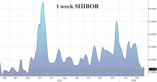 and SHIBOR at multi-month lows (suggesting plenty of liqudity at the banks but as we see below, a clear unwillingness to lend)…