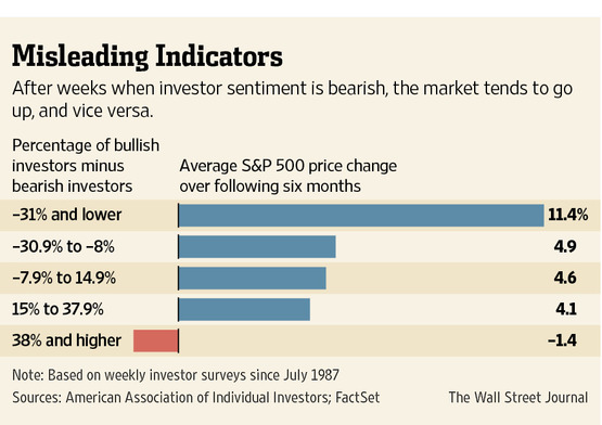 The first challenge is to decide what measure of investor sentiment to look at. One widely used option: the American Association of Individual Investors sentiment survey, which the 170,000-member nonprofit in Chicago has conducted weekly since July 1987. AAII says the survey typically gets responses from a few hundred affluent, hands-on investors.