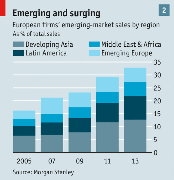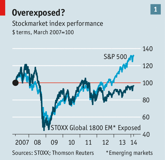 This year Western firms’ giant bet on the emerging world will come under more scrutiny. Most multinationals are far more profitable in emerging markets than Vodafone. American firms made a 12% return on equity in 2012, roughly in line with their global average. But having grown fast, profits are now falling in dollar terms. There has been a long bout of share-price underperformance as investors have lost their euphoria. An index run by Stoxx, a data firm, of Western firms with high emerging-market exposures has lagged the broader S&P 500 index by about 40% over three years (see chart 1). And the recovery in the rich world will mean there will be more competition for resources within firms.