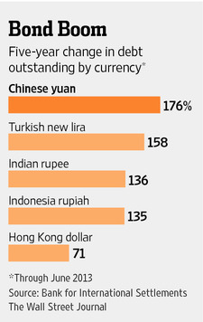 Borrowing by Chinese companies has risen faster than China’s economy has expanded over the past five years. J.P. Morgan Chase & Co. estimates that overall corporate debt jumped to 124% of China’s gross domestic product in 2012 from 92% in 2008. That exceeds the 81% for the U.S. and is far higher than the 40% to 70% of other emerging economies, according to J.P. Morgan Chase.