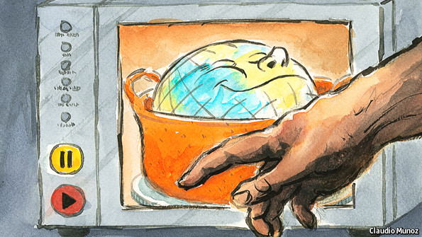 An alternative way of looking at the pause’s significance was to say that there had been a slowdown but not a big one. Most records, including one of the best known (kept by Britain’s Meteorological Office), do not include measurements from the Arctic, which has been warming faster than anywhere else in the world. Using satellite data to fill in the missing Arctic numbers, Kevin Cowtan of the University of York, in Britain, and Robert Way of the University of Ottawa, in Canada, put the overall rate of global warming at 0.12°C a decade between 1998 and 2012—not far from the 1990s rate. A study by NASA puts the “Arctic effect” over the same period somewhat lower, at 0.07°C a decade, but that is still not negligible.