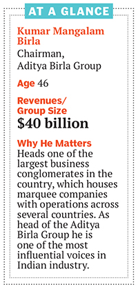 As the leader of the $40 billion multi-diversified conglomerate, the Aditya Birla Group, Kumar Mangalam Birla, 46, has steered the empire earlier headed by his iconic father Aditya Vikram, creating what is today an Indian multinational straddling 36 countries in businesses as diverse as metals, carbon black, viscose staple fibre, mobile telephony, cement and fertilisers, among others.