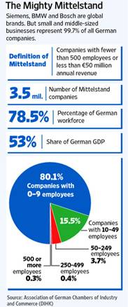 Germany’s Mittelstand, the more than 3.5 million small and midsize family enterprises employing more than 78 percent of workers and contributing more than half of the country’s GDP, forms the backbone of Germany’s resilient export-driven economy. The Mittelstand traces its roots to the Middle Ages, when the country that is now Germany was divided into hundreds of states. Competition between them created a number of industrial regions with their own educational institutions, banks and political administrations. This is very different from the centralized economies such as in France. WWII cemented the Mittelstand’s importance, as big corporations were tainted by their association with the Nazis and often based in big cities destroyed by allied bombing. The Mittelstand had to export early on, given that some German states were smaller than two football fields.These agile creatures darting between the legs of multinational monsters are dominant global players insophisticated, hard-to-imitate niche products and valuable critical niches that are largely invisible to the average consumer. While BMW (BMW GR), Audi (NSU AG), enterprise software giant SAP AG (SAP GR), Adidas (ADS GR), Hugo Boss (BOSS GR), Robert Bosch, consumer giantsBeiersdorf (BIE GR) and Henkel (HEN GR), dialysis giantFresenius (FRE GR), pharmaceuticals giant Bayer (BAYN GR), chemicals giant BASF (BAS GR), industrial gas specialist Linde AG (LIN GR), truck and engine maker MAN SE (MAN GR), Siemens (SIE GR) are well-known names, there are quiet resilient compounders that fit the Bamboo Innovator framework, including commercial kitchen equipment company Rational AG (RAA GR), eyewear specialistFielmann (FIE GR), KSB (KSB GR) pumps, women’s fashion Gerry Weber (GWI1 GR), specialty chemicals specialists Brenntag (BNR GR), K+S AG (SDF GR) and Lanxess (LXS GR), Kärcher high-tech cleaners, Würth group (the Fastenal of Europe), auto gasket maker Elringklinger (ZIL2 GR), flavor and fragrance specialist Symrise (SY1 GR), electronic payment specialist Wirecard (WDI GR), lab solution specialist Sartorius (SRT GR), medical vision technology specialist Carl Zeiss Meditec (AFX GR), engineering specialist Bilfinger (GBF GR), packaging and bottling machine maker Krones (KRN GR), cable specialist Leoni (GR), metalworking specialist Schuler (SCUN GR), medical products Paul Hartmann (PHH2 GR), DIY home improvement specialist Hornbach Baumarkt (HBM GR) and so on.